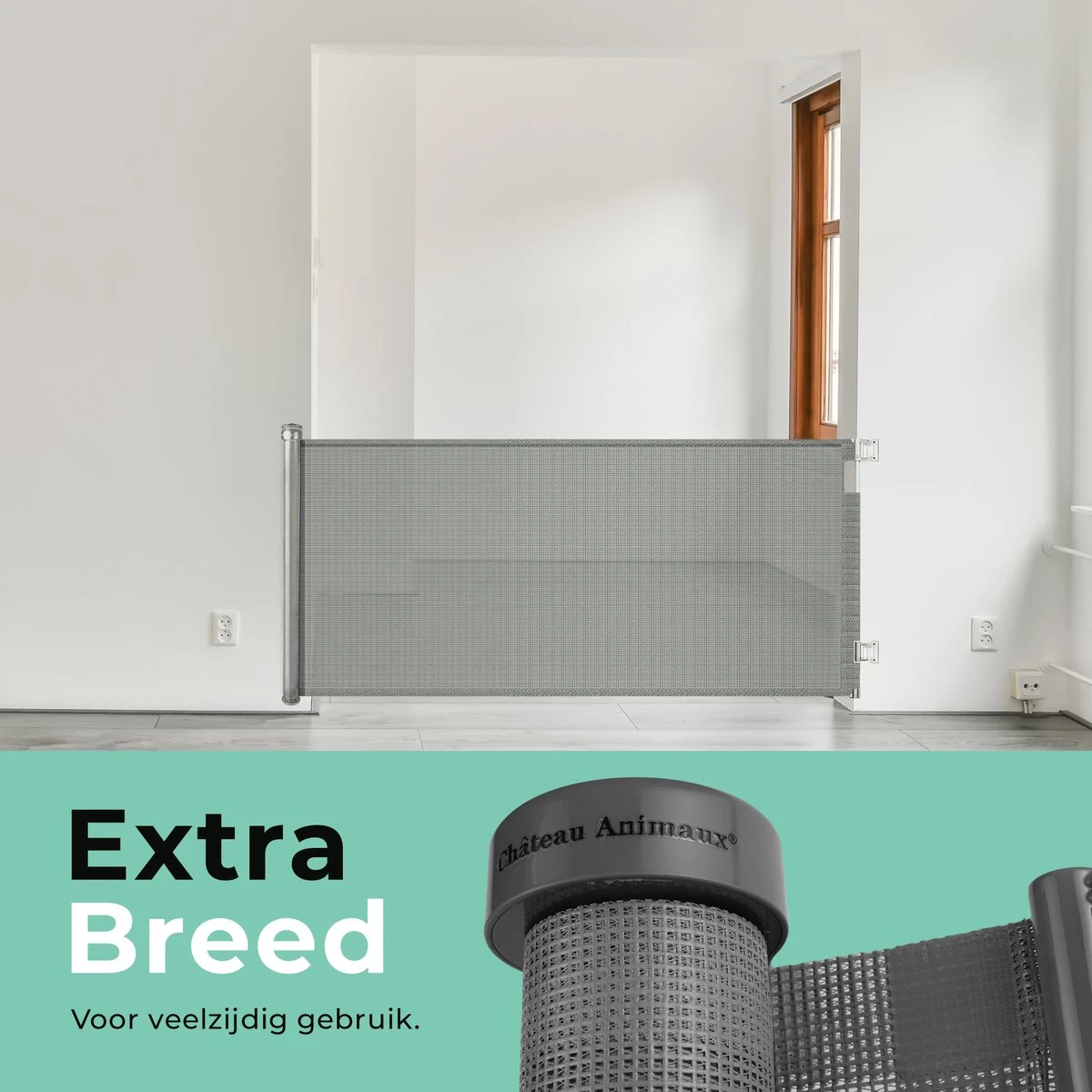 Ben je op zoek naar een stijlvol en effectief hondenhek? Dan is dit hondenhek van Chateau Animaux® écht iets voor jou! Je schermt de gewenste ruimte gemakkelijk af. Heb je het hek even niet nodig? Dan rol je hem gemakkelijk weer in!
