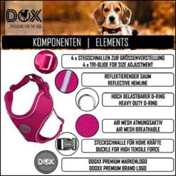 DDOXX Hondenharnas, Reflecterend, Verstelbaar, Breakaway | Borstharnas Voor Klein, Middelgroot | Hondenharnas Hond Kat Puppy Auto | Kattenharnas Puppy Harnas | Roze Roze, S
